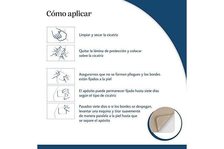 FLEXIBLE, RECORTABLE Y CÓMODO: Su material adaptable permite ajustarse a distintas zonas del cuerpo sin perder adherencia; Se puede recortar antes de aplicarlo para adaptarse al tamaño de la cicatriz sin afectar su efectividad