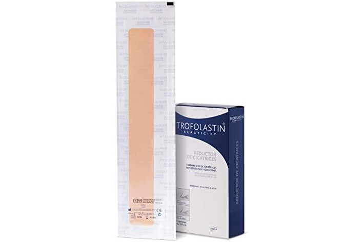 Trofolastin, Reductor de Cicatrices, Apósitos Adhesivos para Cicatrices Hipertróficas y Queloides, Quemaduras y Cortes, Tamaño 4x30cm, 5 Unidades