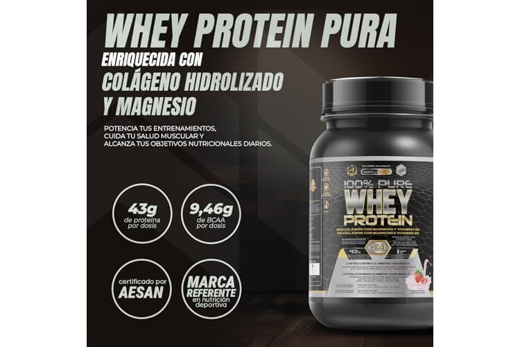 Whey Protein Healthy Fusion | Proteína pura con Colágeno, Magnesio y Vitamina B6 | 43g proteína + 9g BCAA | Mejora tus entrenamientos, aumenta masa muscular y fortalece articulaciones | 1 kg