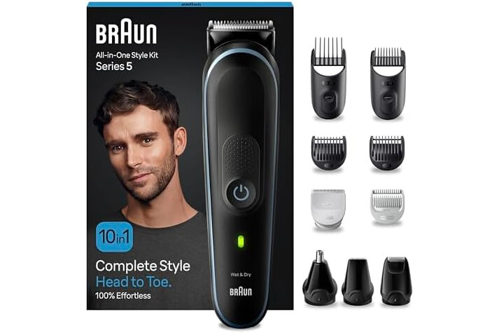 Recortadora todo en uno 10 en 1 de Braun de pies a cabeza: herramientas especiales para barba, nariz y orejas , corte de pelo y depilación masculina para todo el cuerpo