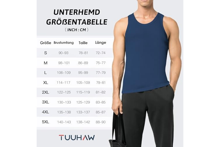 TUUHAW Camisetas de Tirantes para Hombre Pack de 5 de Algodón 100% Cómodo Múltiples Colores Y Tamaños