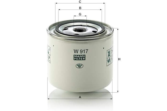 MANN-FILTER Filtro de aceite W 917 / Dimensiones (mm): A = 93; B = 62; C = 71; G = 3/4-16 UNF; H = 85 / Filtro Premium con Calidad de Equipo Original