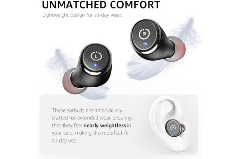 TOZO T10 Auriculares Inalámbricos Bluetooth 5.3 con Control Táctil ORIGX 2.0 Acústico EQ Ajuste 55H Reproducción Soporta Carga Inalámbrica y USB Tipo C IPX8 Negro Mate