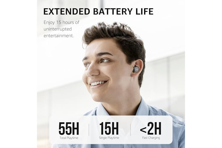 [55 horas de duración de la batería] TOZO T10 te ofrece la libertad de disfrutar de miles de canciones. Una sola carga dura 15 horas y el tiempo total de reproducción con el estuche de carga es de 55 horas. También admit...