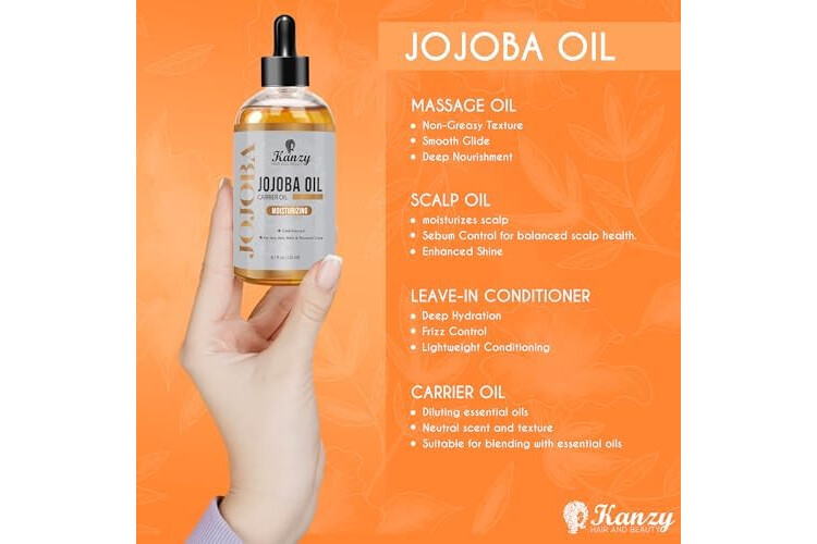 Cuidado de la hidratación: El aceite de jojoba Kanzy es un excelente hidratante, es profundamente nutritivo y se siente ligero en la piel. Aceite ideal para el cuidado del cabello, la piel, las uñas, y mezclas de aceite de masaje