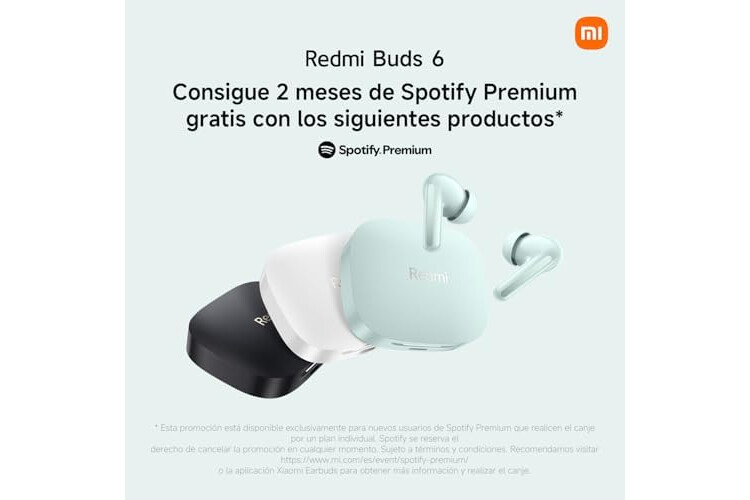 XIAOMI Redmi Buds 6 - Auriculares inalámbrico, cancelación de Ruido, Ligero, 10 Horas de autonomía y 42 Horas con el Estuche de Carga, Bluetooth, Verde (Versión ES)