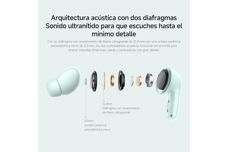 Sonido Hi-Fi de doble driver: driver de bajos de 12.4 mm y tweeter cerámico mirco-piezeolecfric de 5.5 mm, proporcionan un rendimiento equilibrado con agudos suaves; compatible con ajustes 4EQ para distintas necesidades de escucha medios ricos y graves sólidos, lo que le permite experimentar un sonido Hi-Fi de alta calidad