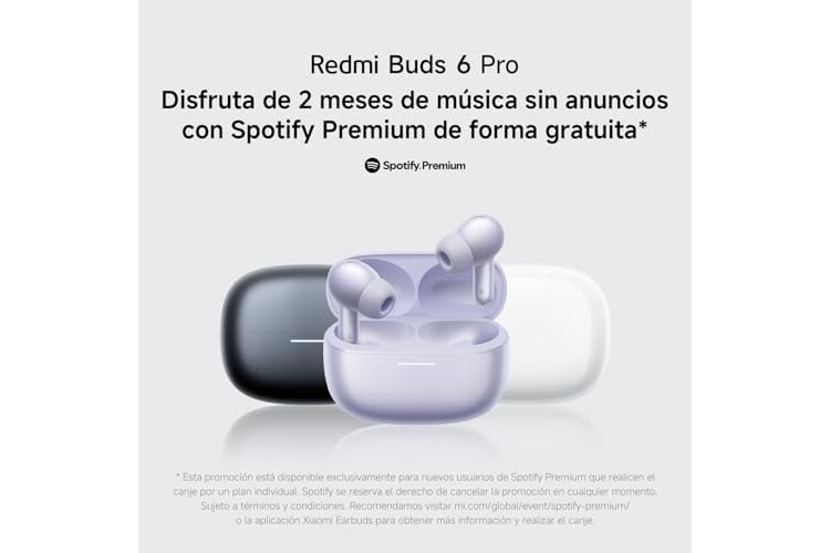 XIAOMI Redmi Buds 6 Pro - Auriculares inalámbricos, cancelación de Ruido, Ligeros, hasta 36 Horas de autonomía, Bluetooth 5.3, Negro(Versión ES)