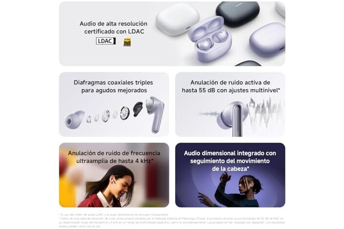 Cancelación activa del ruido de 55 dB con 20 modos de nivel; la reducción total del ruido ANC es de 490.9 un 14.16% más que la generación anterior