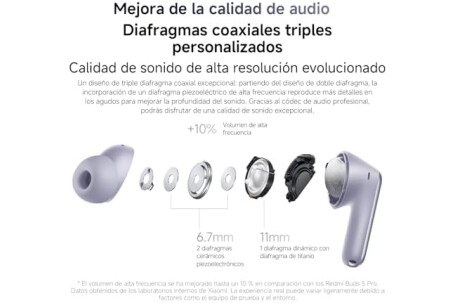 Sonido de alta resolución certificado con transductores triples coaxiales y LDAC, cancelación activa del ruido híbrida de 55 dB/4 kHz, un 14.16% más que la generación anterior; sonido inmersivo integrado con 5 modos para más realismo; compatible con Google Fast pair y Xiaomi Earbuds App