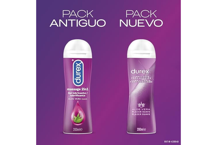 Durex Play Massage Gel Lubricante 2 en 1, Gel de Masaje y Lubricante con Aloe Vera 200 ml [Pack 2 Unidades]