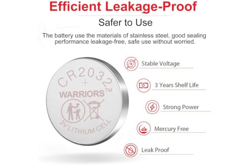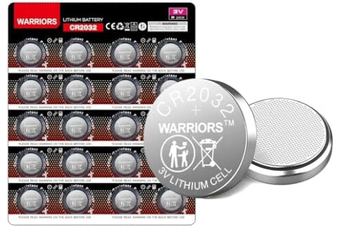Warriors 20X CR2032 2032 Pilas de Litio de 3V Tipo Botón, Empaque Seguro para Niños, para Dispositivos Electrónicos y Llaves de Coche