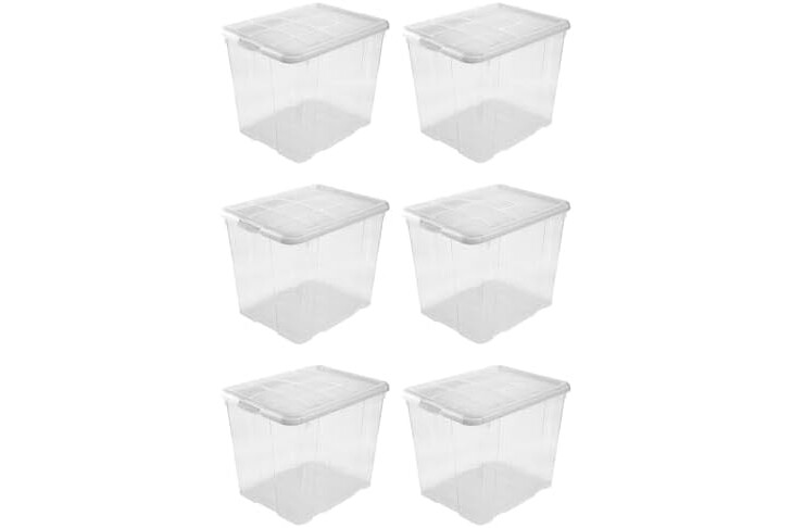 AC - Pack de 6 Cajas de ordenación de plástico Transparente N.º 17. Contenedor para almacenar Juguetes, Libros, Ropa, Mantas. Capacidad 35 litros. Dimensiones Aprox.: 42,2 x 35 x 35,5 cm