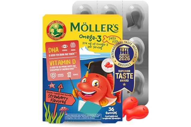 Moller’s ® | Omega 3 para niños | Omega-3 Cápsulas de Aceite de Pescado con Ácidos Grasos Omega 3 | Con DHA y EPA, Sin Gluten, Sin Lactosa, Sin Azucares Añadidos | Fresa | 36 Uds