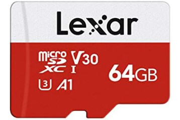 Lexar Tarjeta Micro SD 64 GB, hasta 100 MB/s de lectura, A1, U3, C10, V30, 4K, Full HD, Tarjeta de memoria con adaptador SD, microSDXC UHS-I para teléfono, videocámara, Switch, GoPro, tableta
