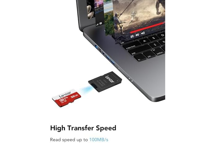 Alta velocidad de transporte: con velocidad de lectura de hasta 100 MB/s, estas tarjetas micro SD Lexar tienen clasificación de clase U1, V10 y para un rendimiento de alta velocidad, permite transferir sin problemas fotos de alta calidad y vídeos 1080P UHD. Formato FAT32.