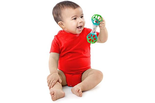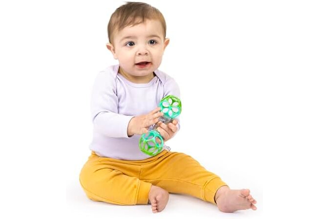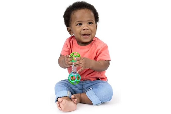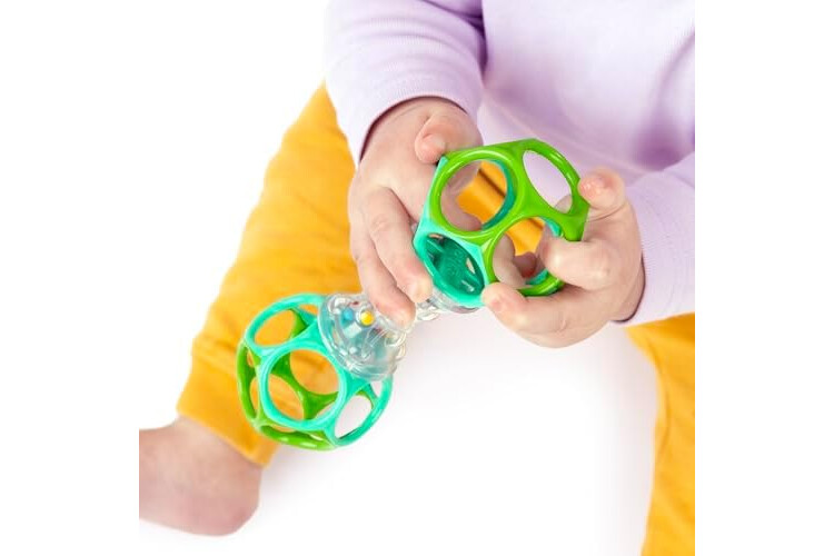 Bright Starts, Sonajero Oball Easy Grasp para bebé en azul/verde, apto desde recién nacido