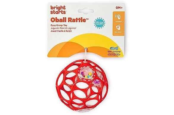 Bright Starts Oball Pelota sonajero de fácil agarre, rojo, sin BPA, para recién nacidos y mayores, 10 cm