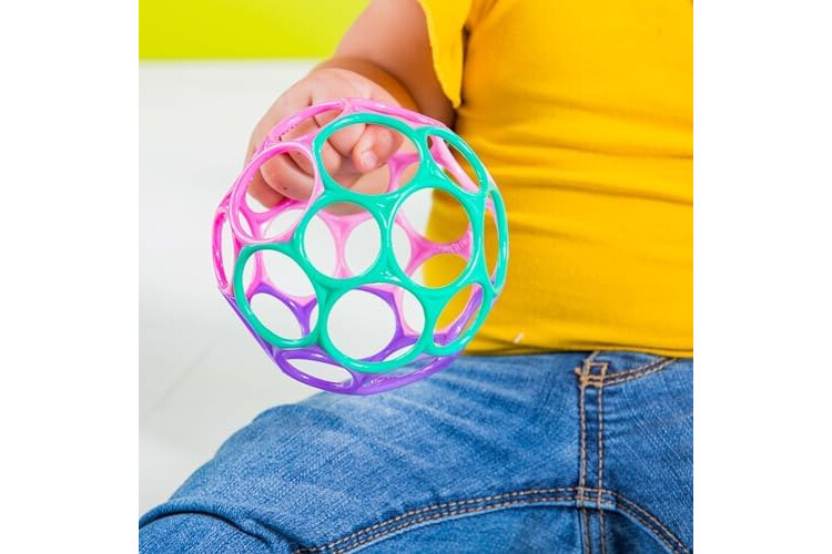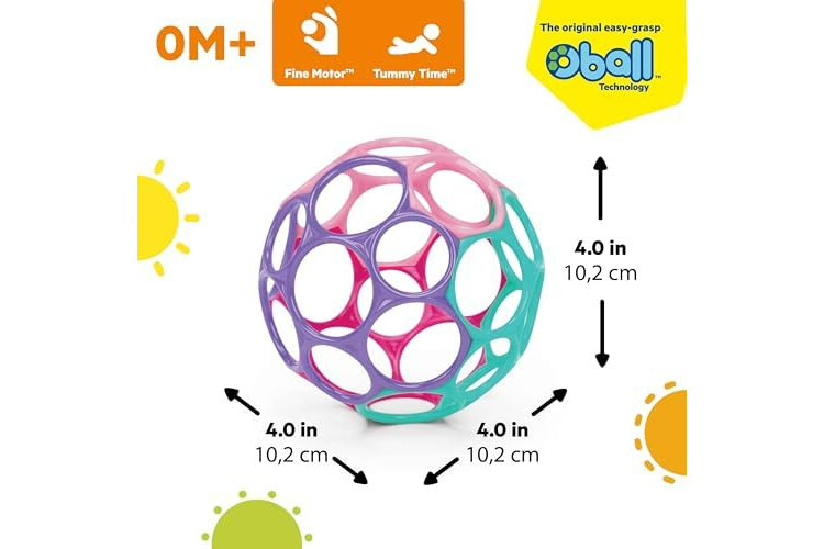 Bright Starts Oball Easy Grasp Classic Pelota Juguete Infantil en Rosa/Morado, Edad Recién Nacido en adelante