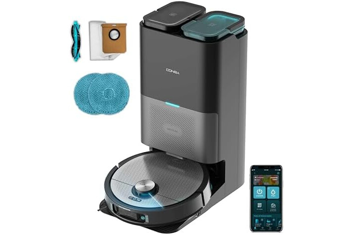 Cecotec Robot Aspirador y Friegasuelos Base Autovaciado con Hair Cutting Conga 20090 ProAI InfinitySoap Cut&SPA. 8000Pa, Tecnología Láser, Detección de Objetos, Dosificador de Jabón, App