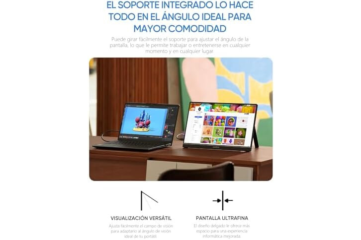 [Pantalla IPS Full HD 1080P] La pantalla portátil IPS ofrece un ángulo de visión completo de 178°. La relación de contraste de 1000:1 ofrece una imagen precisa y vívida.