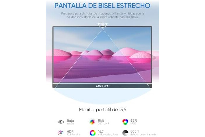 ARZOPA Monitor portátil, Monitor Portátil IPS FHD de 15,6" 1920 × 1080 con Soporte, Segunda Pantalla Ultradelgada para Computadora Portátil/PC/Mac/PS3/4/5/Xbox - A1