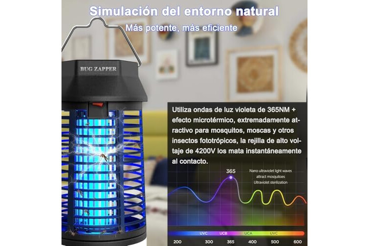 Sin Riesgos Químicos: La lámpara antimosquitos funciona exclusivamente con electricidad y no produce sustancias nocivas ni olores. Es segura para niños y mascotas.