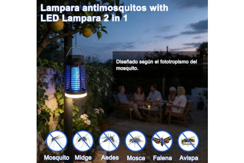 Lampara antimosquitos 2 en 1 Con LED: La lámpara combina una luz UV de 15W con una LED de 9W, atrayendo eficazmente a mosquitos, polillas y otros insectos voladores. El voltaje de 4200V garantiza que los insectos mueran al instante al entrar en contacto con la rejilla electrificada. Ideal para usar en balcón y jardín. [ luz led la puede encender o apagar segun lo necesites.]