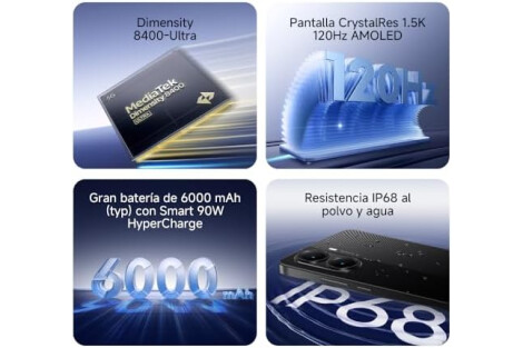 POCO X7 Pro cuenta con una batería de 6000 mAh (typ), la mayor capacidad en la historia de la marca, que permite 14,5 horas de uso continuo con una carga completa. Cuando llega el momento de recargar, la HyperCharge de 90 W alcanza el 100% en solo 42 minutos. Más allá de la velocidad de carga, la batería impresiona por su durabilidad, ya que mantiene el 90% de su capacidad incluso después de 1000 ciclos de carga completos, asegurando una vida útil significativamente más larga. Además, el disp...