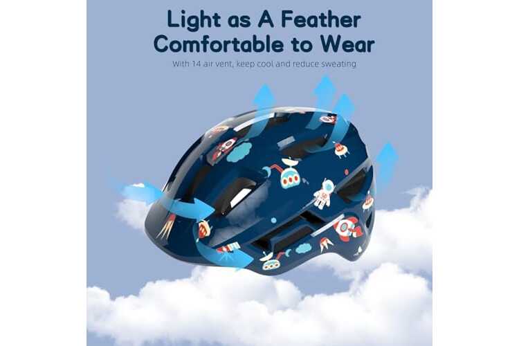 • 【Respirable y Cómodo Sin Sudoración】---Equipado con 14 rejillas de ventilación con diseño de flujo de aire optimizado, junto con un acolchado respirante. Mantiene la cabeza de los niños fresca y seca durante las actividades, sin ejercer presión excesiva sobre su pequeña cabeza...