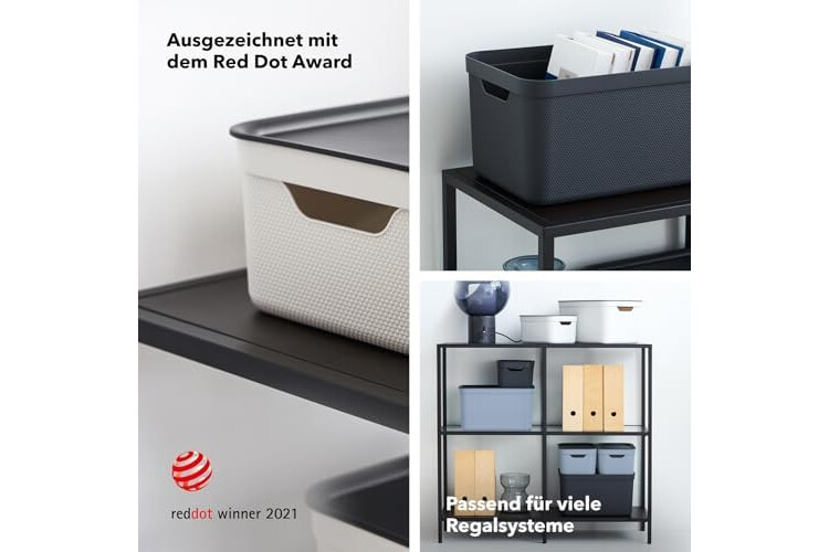 • Con un diseño atractivo y atemporal: galardonado con el Red Dot Design Award 2021 | Con cómodas asas | Las cajas encajan perfectamente en cada estante