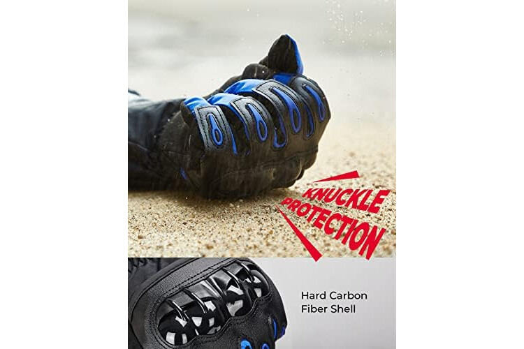 【PROTECCIÓN DE CARCASA DURA】 los guantes de invierno moto para hombre están diseñados con carcasas de plástico duro en el dorso de la mano. Son muy estables y bien pensados con la defensa extra en los nudillos. Para evitar que sus manos sufran golpes y abrasiones al caer.