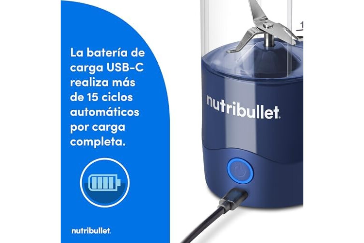 | Características especiales | Base motorizada con cuchillas de acero de cuatro puntas; Vaso Tritan sin BPA de 475 ml; Batería de 2000mAh; Cable de carga USB- |