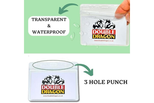 Double Dragon Portatarjetas de identificación transparente, horizontal, 100 unidades