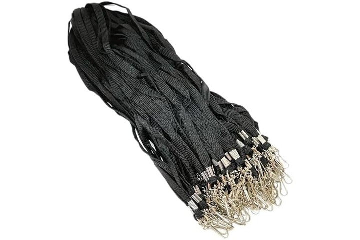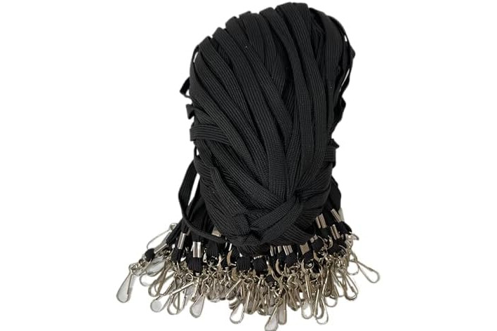 Double Dragon Cordones planos premium con gancho giratorio de metal en J, negro, paquete de 100