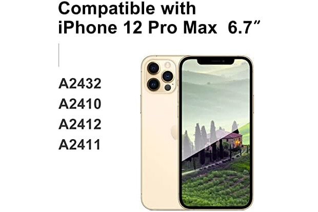 Modelo compatible: iPhone 12 Pro Max 6,7", A2410, A2411, A2412, A2432. No compatible con iPhone 12/12 Pro ni iPhone 12 Mini. Si no sabes cuál es tu modelo, puedes encontrarlo en la parte posterior del teléfono.