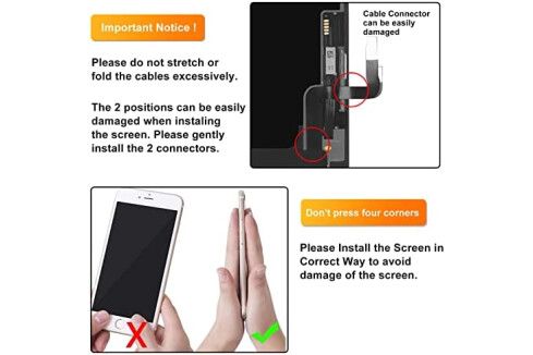 Contenido y notas: pantalla táctil LCD Retina FHD + digitalizador. Accesorios de repuesto completos + herramientas. El auricular y el sensor no están incluidos. Por favor, transfiéralo de su pantalla original a la nueva.