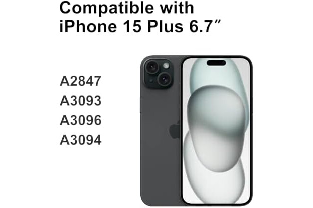 [Modelo compatible] iPhone 15 Plus 6,7", A2847, A3093, A3096, A3094. No compatible con iPhone 15, iPhone 15 Pro/Pro Max. Si no sabes cuál es tu modelo, puedes encontrarlo en la parte posterior del teléfono.