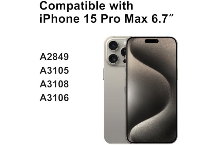 [Modelo compatible] iPhone 15 Pro Max 6,7", A2849, A3105, A3108, A3106. No compatible con iPhone 15/15 Plus, iPhone 15 Pro. Si no sabes cuál es tu modelo, puedes encontrarlo en la parte posterior del teléfono.