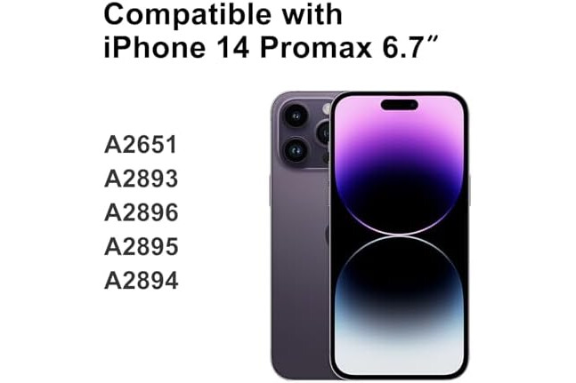 [Modelo compatible] iPhone 14 Pro Max de 6,7 pulgadas, A2651, A2893, A2896, A2895, A2894. No compatible con iPhone 14, iPhone 14 Plus, iPhone 14 Pro. Si no sabes cuál es tu modelo, puedes encontrarlo en la parte posterior del teléfono.