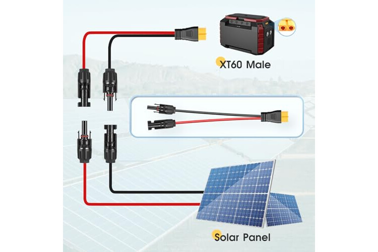 Tipo: Enchufe solar a XT60 socket, panel solar a XT60 cable adaptador hembra; Traje para cualquier que utiliza un macho XT60 como una entrada conectar a los paneles solares a la estación de energía