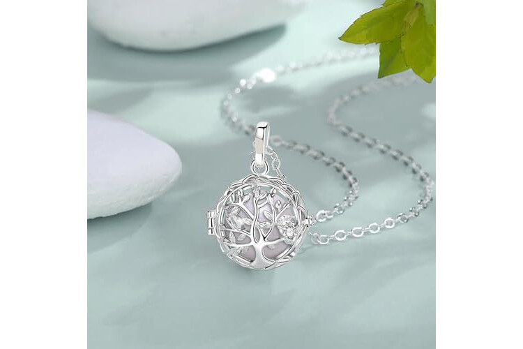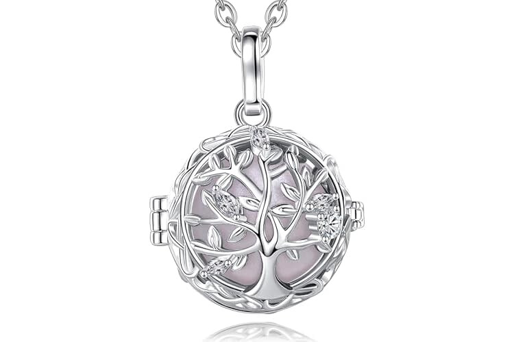 AEONSLOVE Llamadores de Angeles Embarazadas con Dulce Melodía Collar Colgante Árbol de la Vida para Futuras Madres Regalo Original para Mujer Embarazada, 2 Cadenas