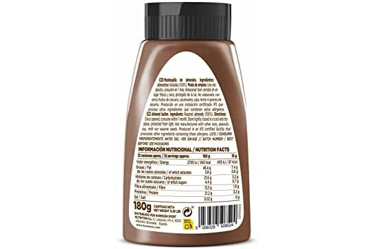 🌰 [ INNOVACIÓN: TEXTURA FLUIDA TIPO "SIROPE" ] Crema de Almendra fluida. Olvídate de la cuchara y de mancharlo todo. Gracias a un molido ultra-fino y filtrado, conseguimos una crema extra líquida y cremosa, ideal para servir directamente. Su exclusivo envase con tapón antigoteo permite dosificar con precisión sobre tus platos. ¡Agitar vigorosamente y servir!