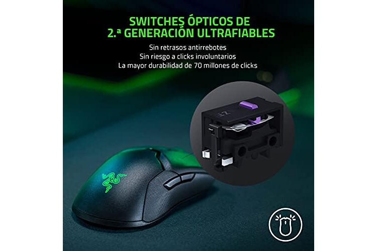 Switches ópticos para ratones Razer: Cada clic que haces se realiza a la velocidad de la luz, sin desactivación de rebote, por lo que siempre serás el primero en apretar el gatillo, los switches también duran hasta 70 millones de clics