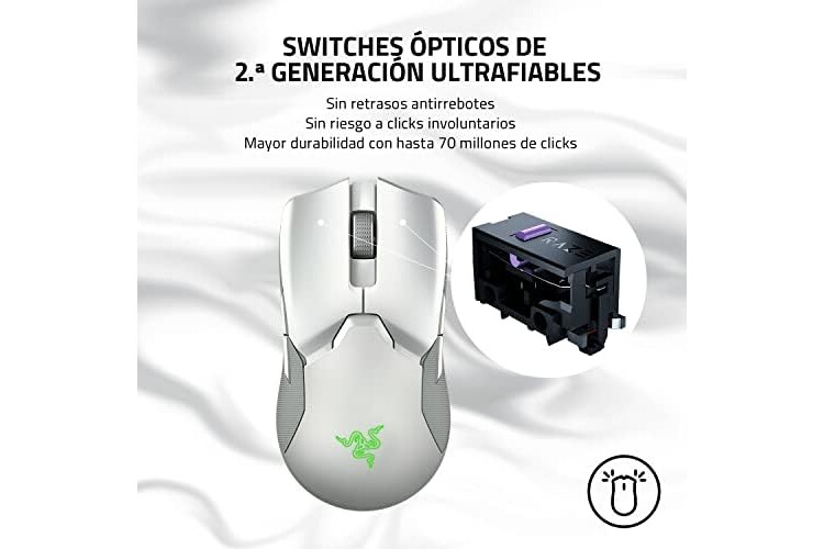 Switches ópticos para ratones Razer: Cada clic se acciona a la velocidad de la luz, sin desactivación de rebote, así que siempre serás el primero en activar el gatillo. Los switches también duran hasta 70 millones de clics.