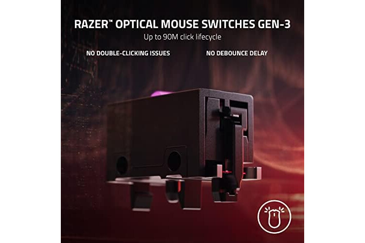 Switches ópticos para ratón Razer de 3 generación: Con un ciclo de vida mejorado de 90 millones de clicks sin problemas de doble click, además de un funcionamiento vertiginoso de 0,2 ms sin retraso de rebote, el ratón garantiza la fiabilidad y velocidad necesarias para los esports.