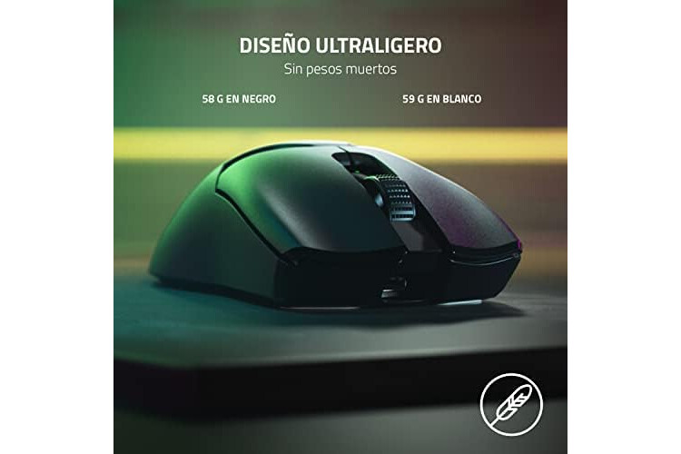Diseño ligero de 58 g: Con casi un 22% menos de peso que el Razer Viper Ultimate, es uno de los ratones de esports más ligeros de la historia y garantiza la velocidad y el control que exigen los mejores jugadores profesionales