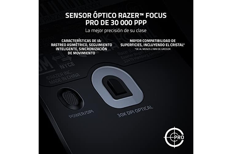 Sensor óptico Razer Focus Pro con la mejor precisión de 30K de su clase: Este sensor totalmente nuevo de Razer ofrece un rendimiento de seguimiento impecable en una gran variedad de superficies, incluido el cristal, complementado con funciones...