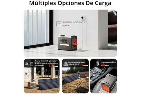 【Carga ultrarrápida dual (1.5 horas)】 Carga simultánea por CA (1100W) y paneles solares (500W). Compatible con enchufes de coche (12V/24V). Esta estacion energia portatil es la más eficiente para aventuras o cortes de luz. Su versatilidad la hace el generador solar perfecto para cualquier necesidad.