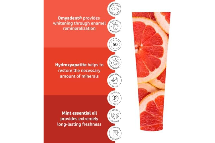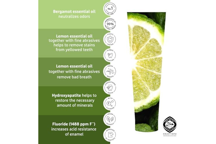 🦷CARACTERÍSTICAS: blanquea los dientes, limpia con éxito la placa, detiene la formación de sarro, fortalece los dientes y las encías, reduce las encías y la sensibilidad dental, refresca el aliento.